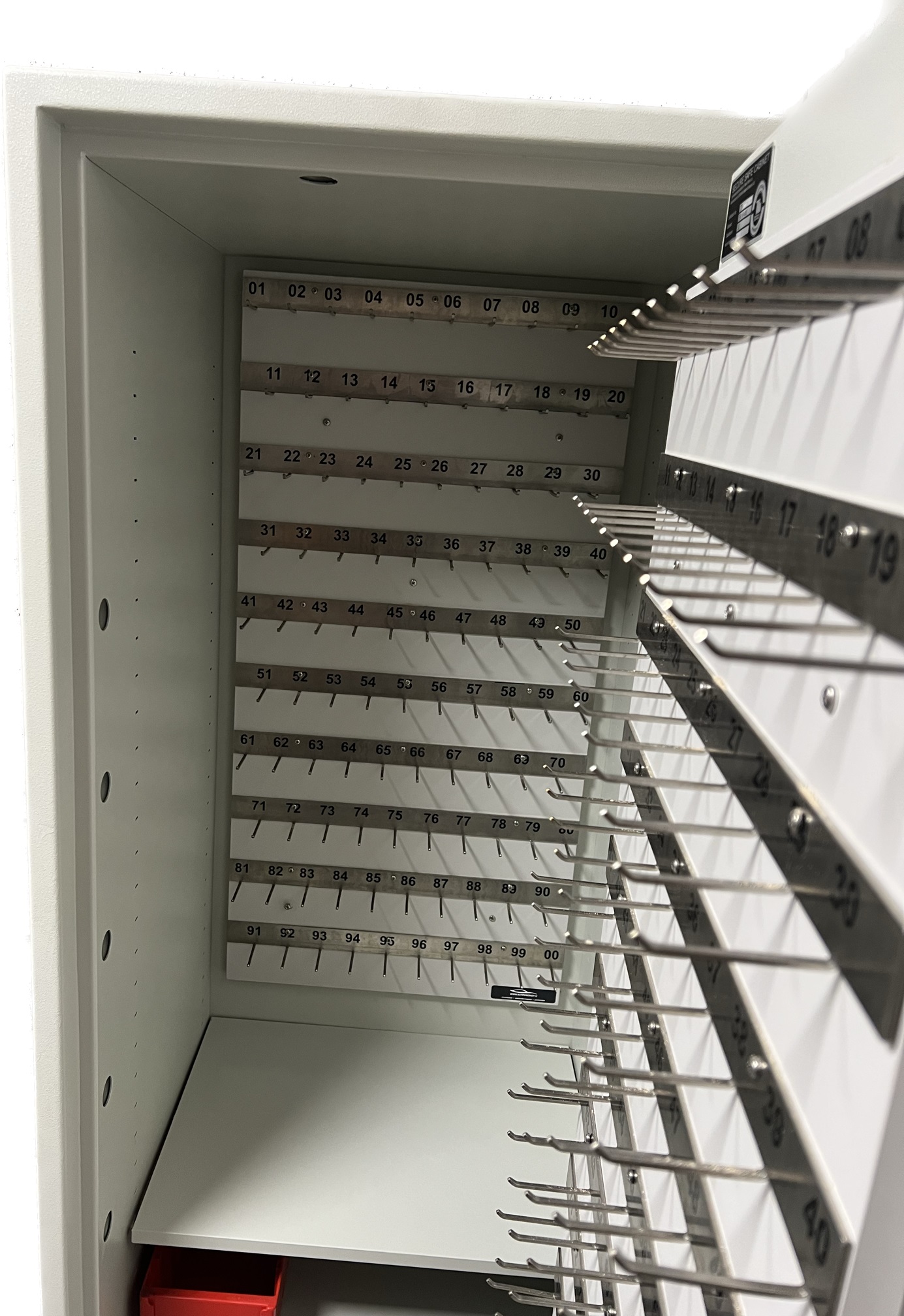 Niet tobben met te kleine haakjes!!! Fijne lange haken (6cm) voor meerdere sleutels aan een haak. Haken zijn genummerd van 01 tot en met 00 Handig als u werkt met de 2 cijfers van een kentekenplaat of chassisnummer
