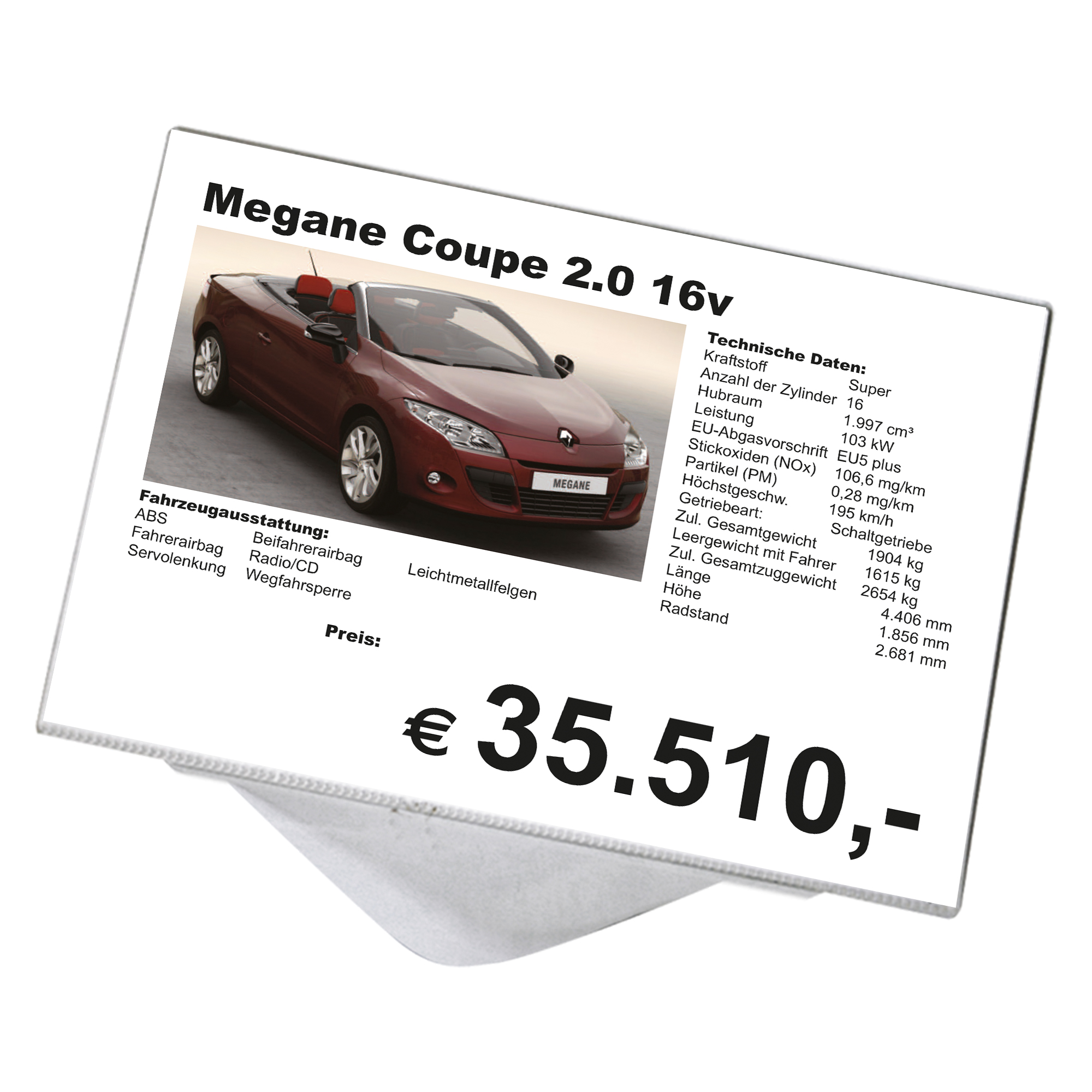 Duidelijke prijs- en informatiedrager voor alle auto's
