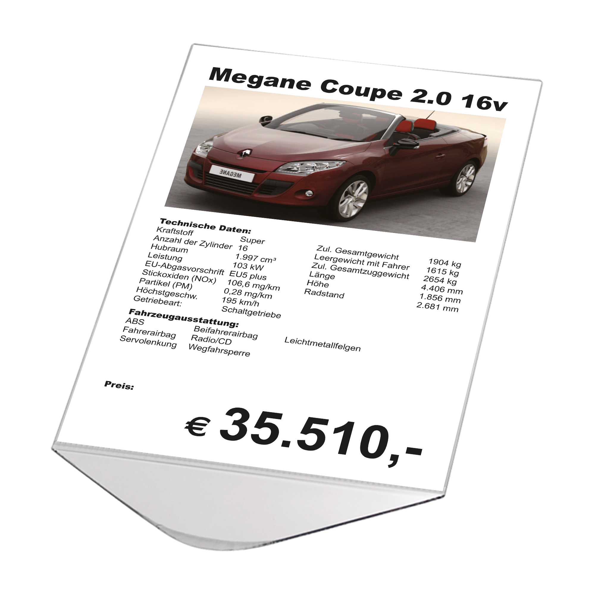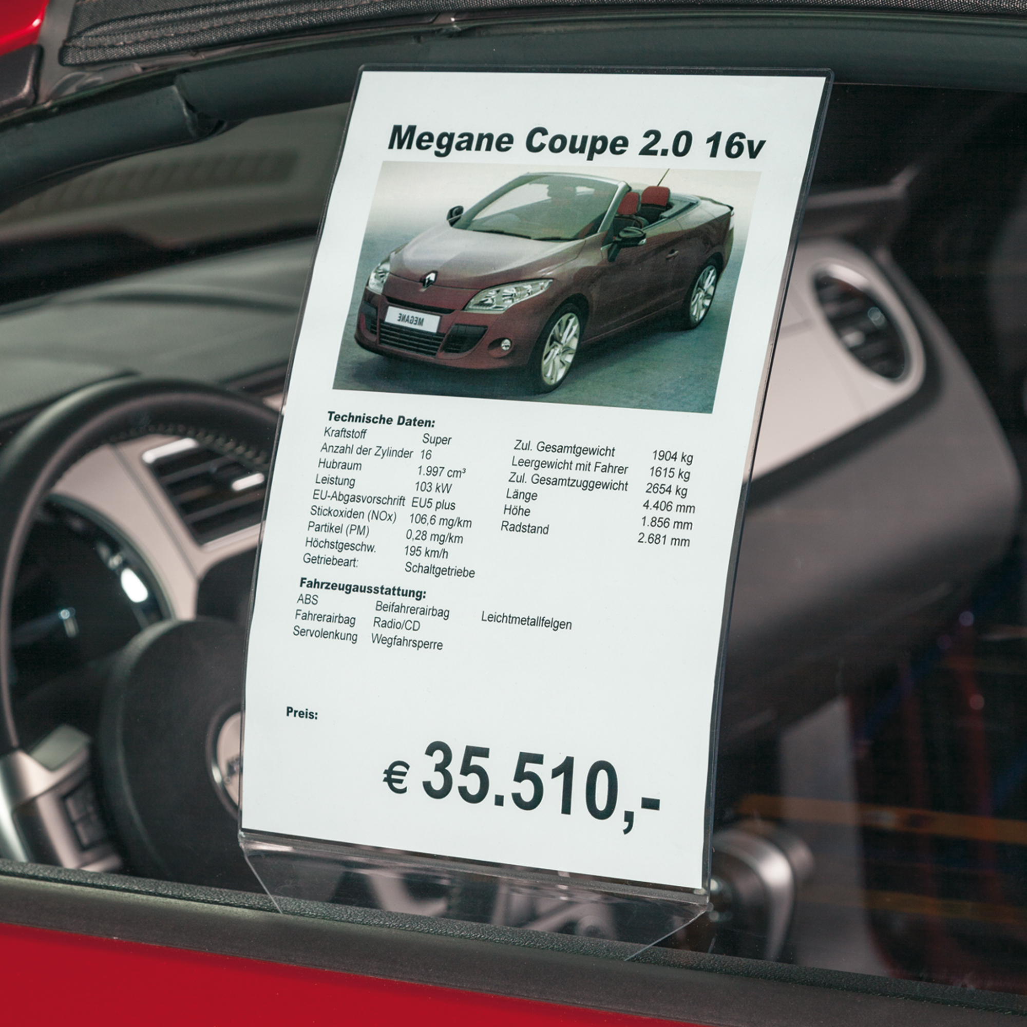 Duidelijke prijs- en informatiedrager voor alle auto's